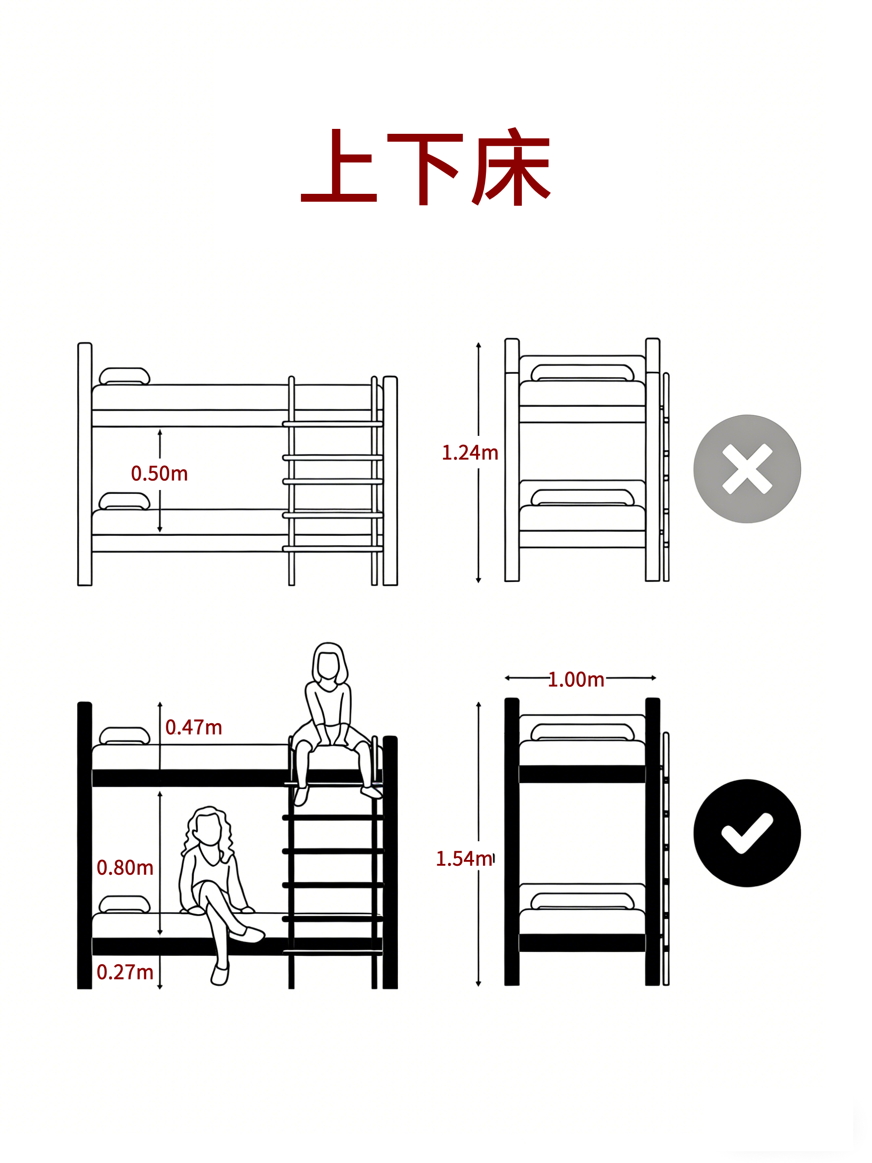 上下床:上下铺净高≥0.8m,整体高度控制合理,使用不压抑。