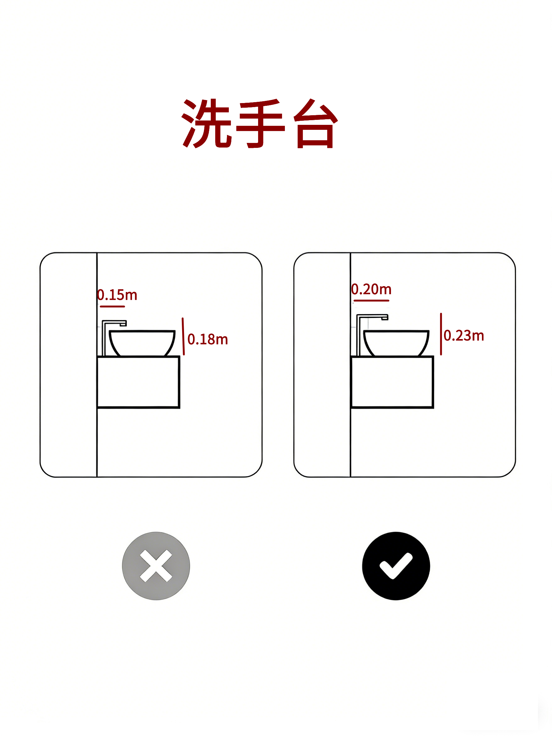 洗手台:龙头、盆边距墙精准定位,减少溅水问题。