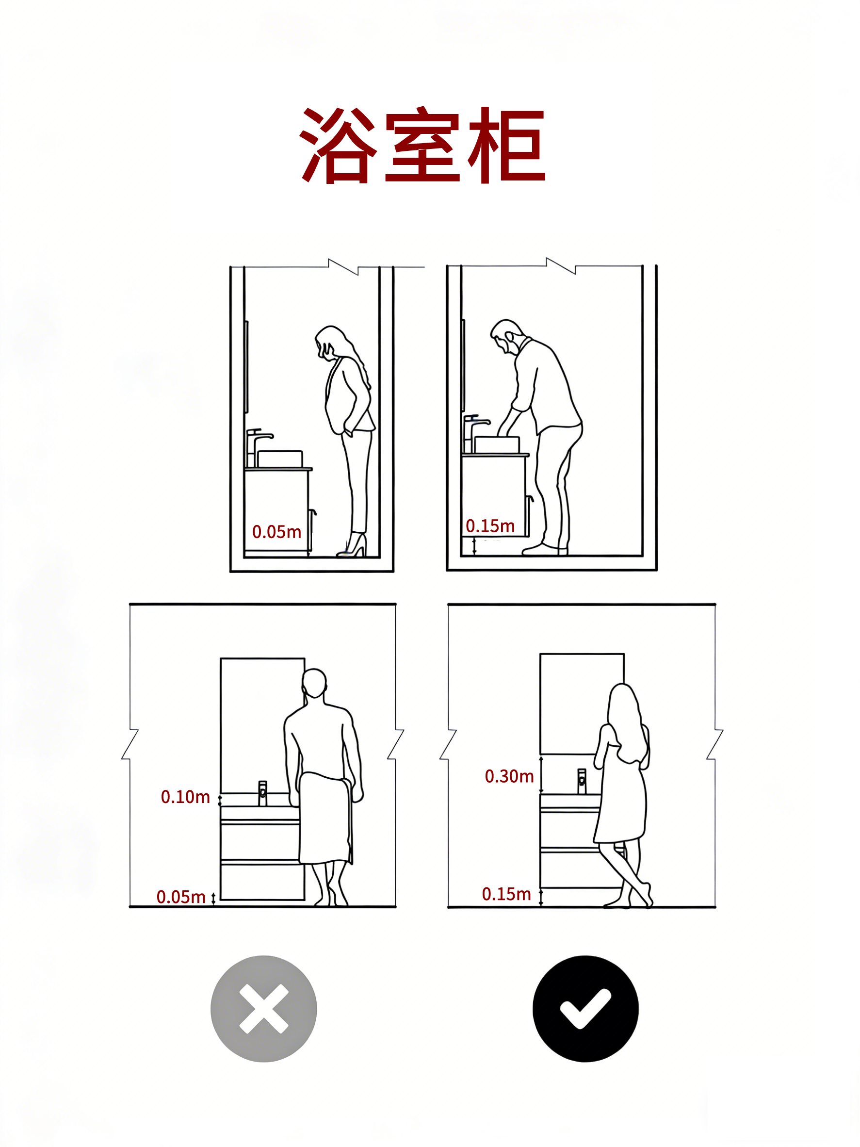 浴室柜:柜前预留活动空间,底部留空方便清洁与收纳。