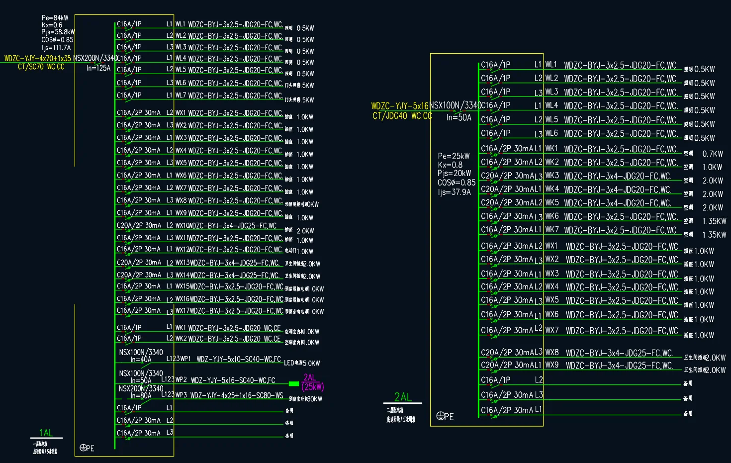 它是为那些用电设备服务?是照明插座配电箱、空调配电箱还是设备控制箱?是应急照明配电箱还是其它配电箱?都是在这张图上面显示出来的。