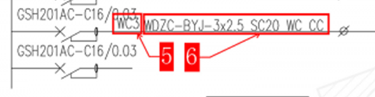 标号5、配电回路编号,对应电气平面图的配管路径。