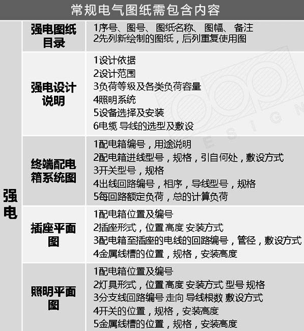 1、一套完整的电气图纸需包含的要素: