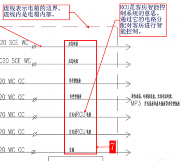 也就是告诉咱们这条回路的电,最后被什么设备给用掉了。明确每条回路是用来做什么的,便于后期进行维修。