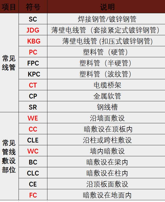 常见线管符号简介: