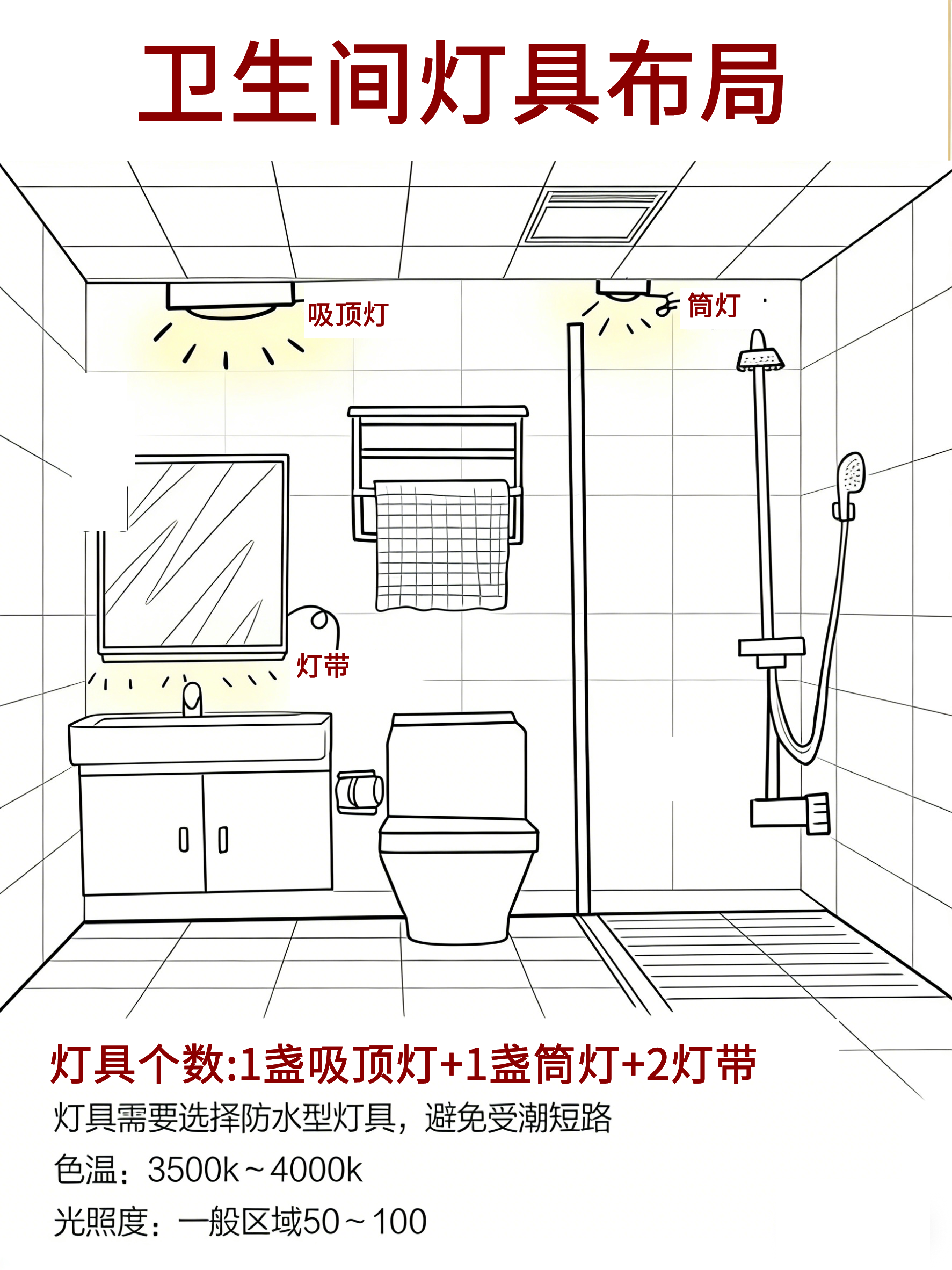 卫生间3500-4000K,洗漱护肤更清晰。