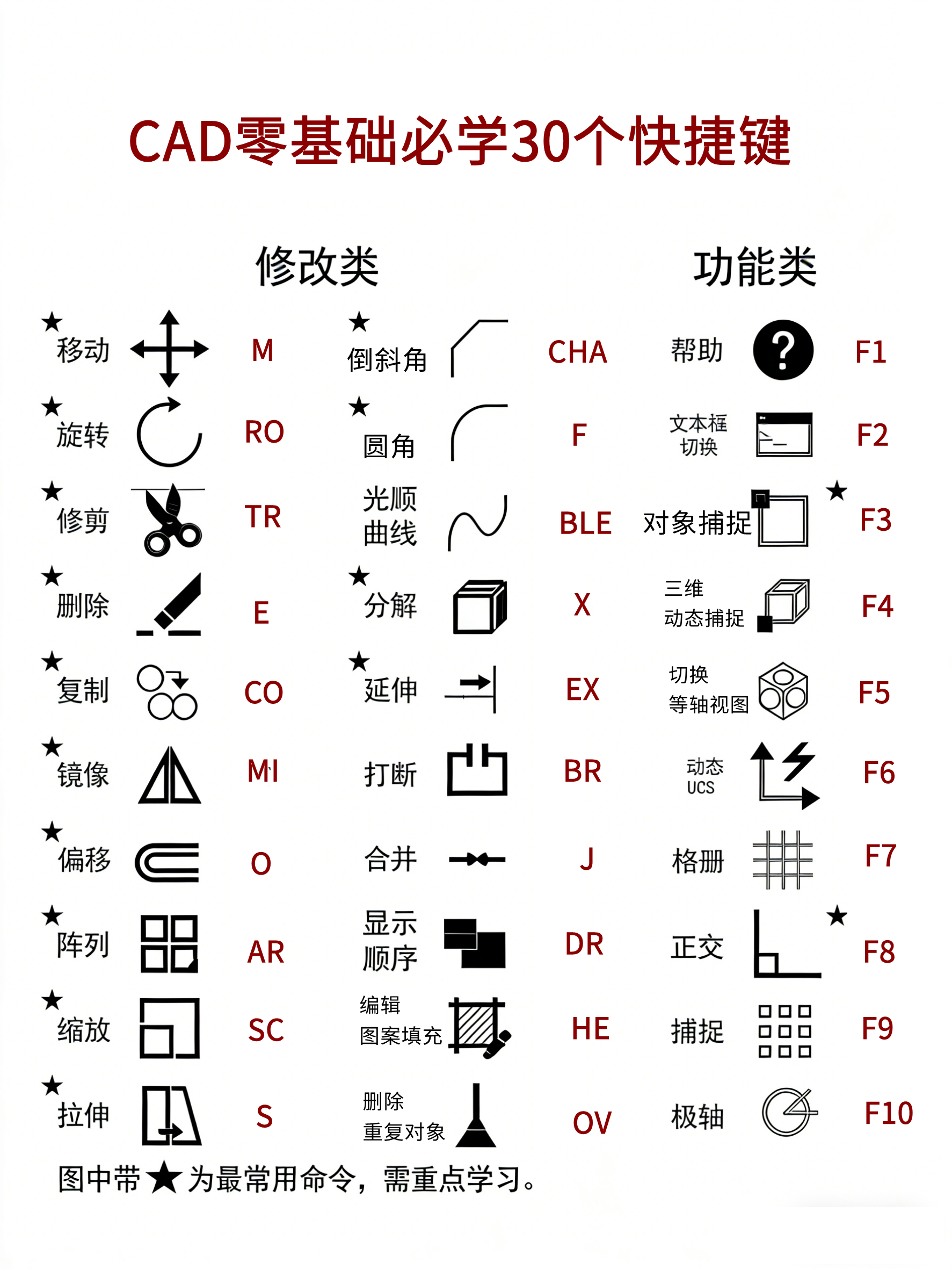 ”,图里带星的更是重中之重,记熟了能直接告别鼠标反复点选的低效操作。